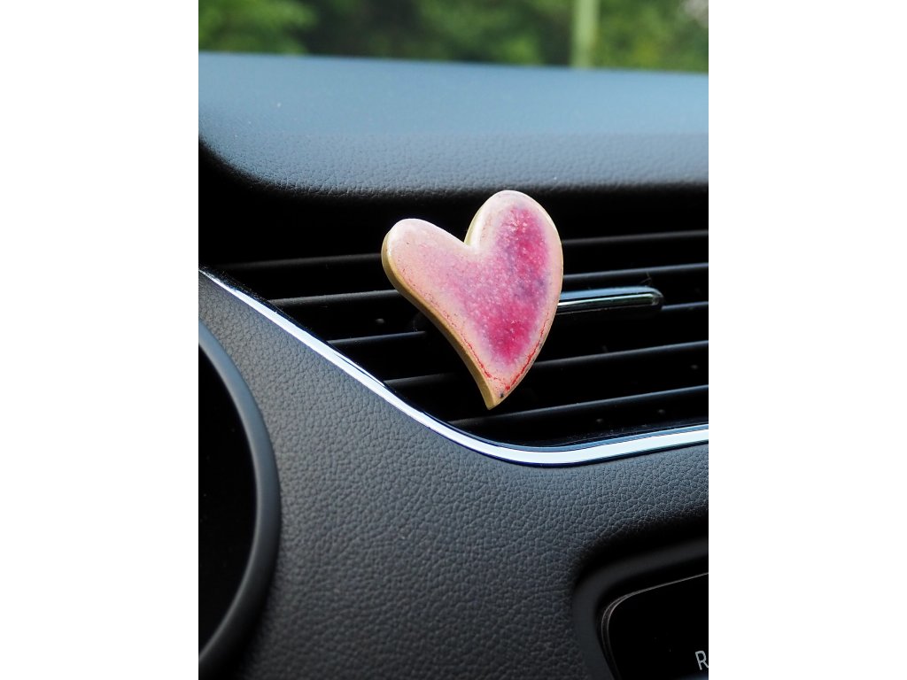 Dekorace do auta - Růžové srdce s efektní glazurou