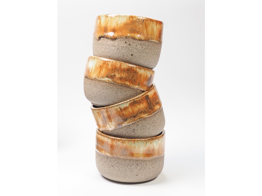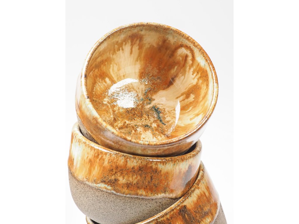 Každý kalíšek je vyráběn ručně, a proto se mohou jednotlivé kusy lehce lišit ve velikosti, tvaru nebo vzhledu glazur. Tyto drobné odlišnosti dodávají každému kousku jedinečnost.
