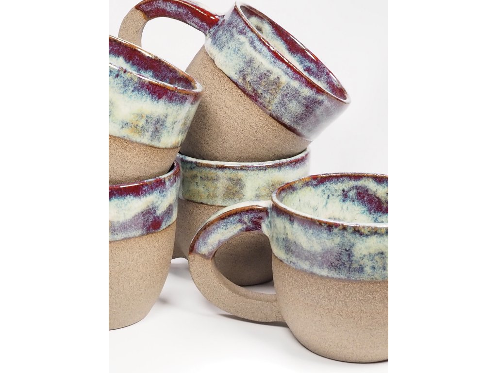 Každý hrníček je vyráběn ručně, a proto se mohou jednotlivé kusy lehce lišit ve velikosti, tvaru nebo vzhledu glazur. Tyto drobné odlišnosti dodávají každému kousku jedinečnost.