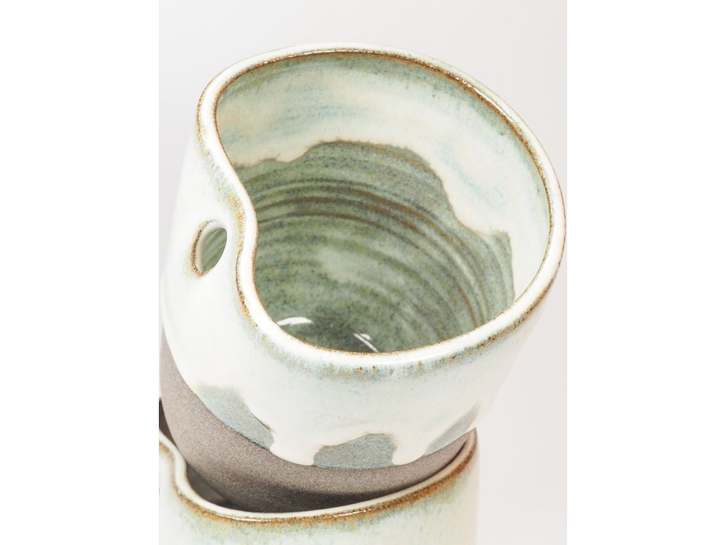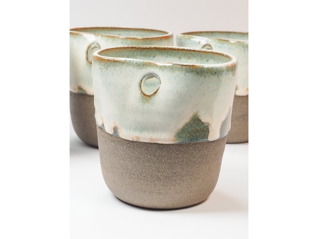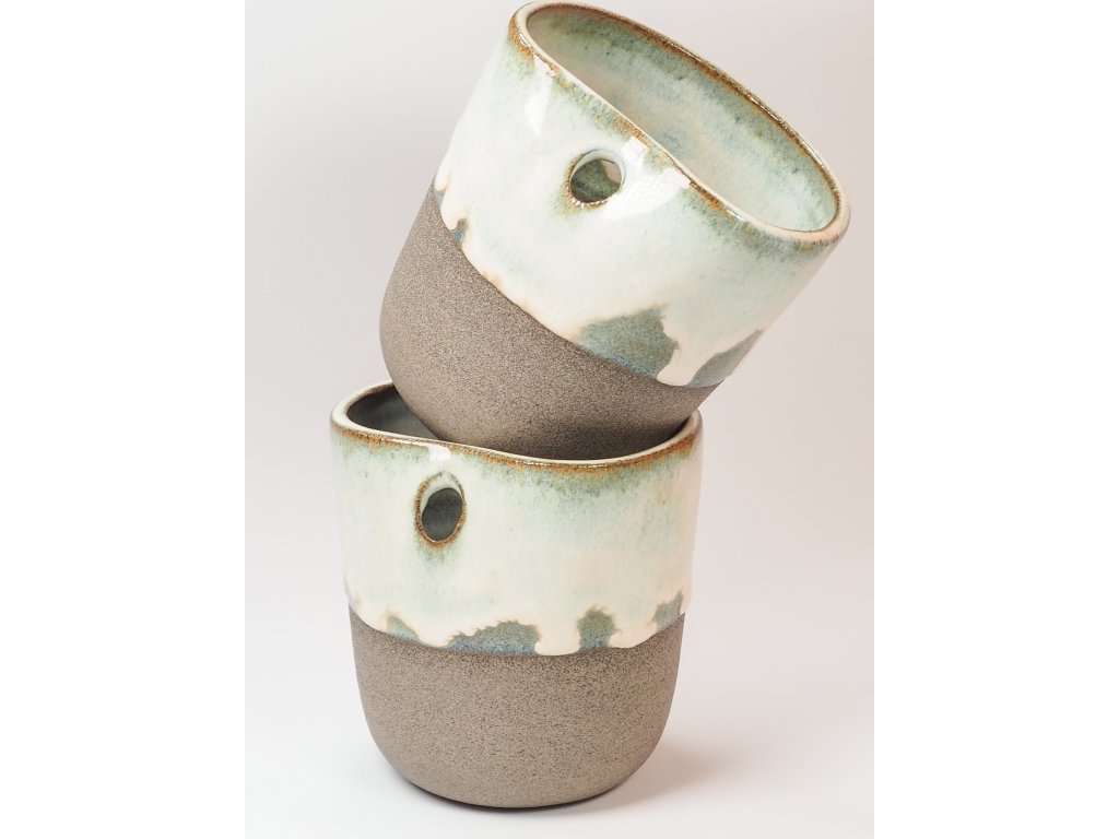 Každý kalíšek je vyráběn ručně, a proto se mohou jednotlivé kusy lehce lišit ve velikosti, tvaru nebo vzhledu glazur. Tyto drobné odlišnosti dodávají každému kousku jedinečnost.