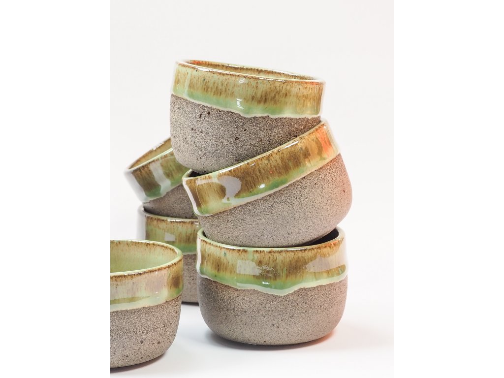Každý kalíšek je vyráběn ručně, a proto se mohou jednotlivé kusy lehce lišit ve velikosti, tvaru nebo vzhledu glazur. Tyto drobné odlišnosti dodávají každému kousku jedinečnost.